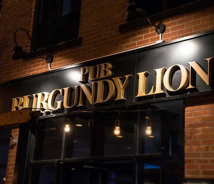 Le Burgundy Lion est un pub traditionnel britannique situé à Montréal, au Québec. Avec son atmosphère chaleureuse et sa décoration authentique, le pub transporte les visiteurs dans une petite tranche d’Angleterre au cœur de Montréal. Que vous cherchiez un endroit pour prendre un repas, boire une pinte entre amis ou regarder les derniers événements sportifs, le Burgundy Lion est l’endroit idéal pour passer une soirée agréable et détendue.