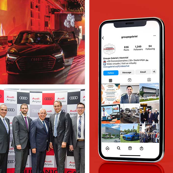 Le Groupe Gabriel est l’un des plus grands groupes de concessionnaires automobiles au Canada, avec un portefeuille de plus de 30 concessions représentant des marques telles que Porsche, Audi et Land Rover. Nous avons collaboré avec le Groupe Gabriel pendant les sept dernières années, en tant qu’extension de leur équipe, en fournissant des services de gestion des médias sociaux, de création de contenu, de conseil, de publicité, de création de contenu payant, de conception graphique et de couverture d’événements.